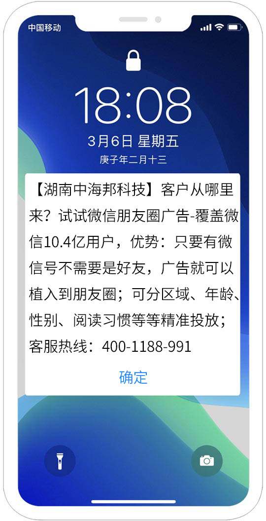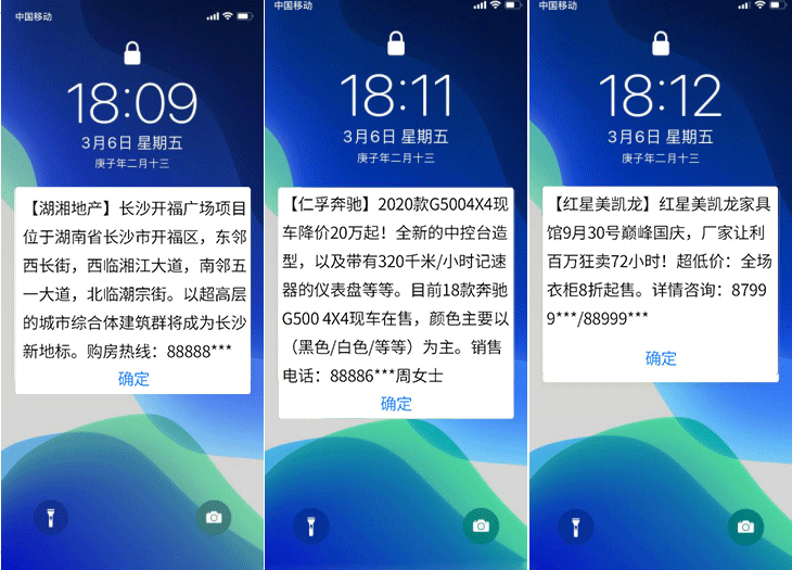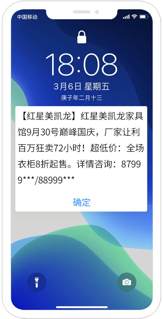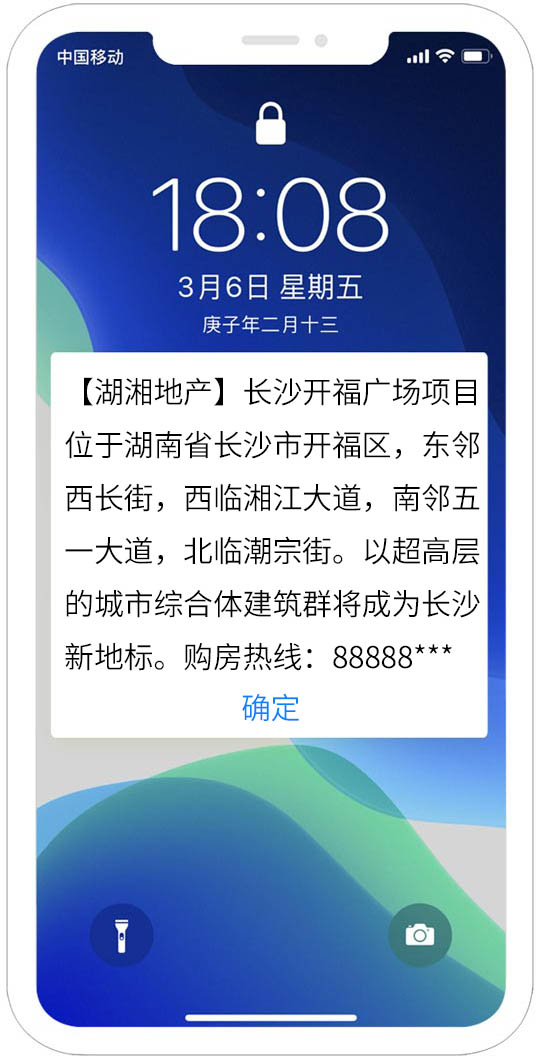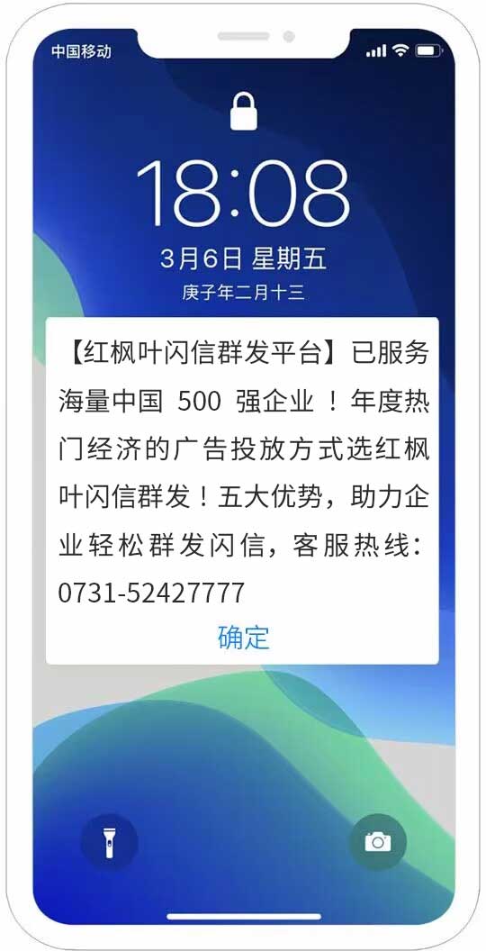沒有一種短信能不被手機攔截呢?試試紅楓葉閃信群發,紅楓葉閃信群發,(又稱彈屏短信、霸屏短信)是指用戶在收到閃信群發內容后,無需打開,短信內容直接顯示在用戶手機屏幕上,用戶如果沒有點擊閱讀,則閃信內容一...